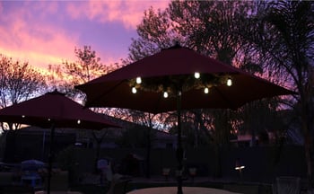 In addition to stringing cables above hardscape surfaces, the ability to cut to length allows for creative applications such as stringing bistro lights under umbrella canopies, matching the 24” lamp spacing with the umbrella rib spacing for an easy install that is attractive yet functional.
